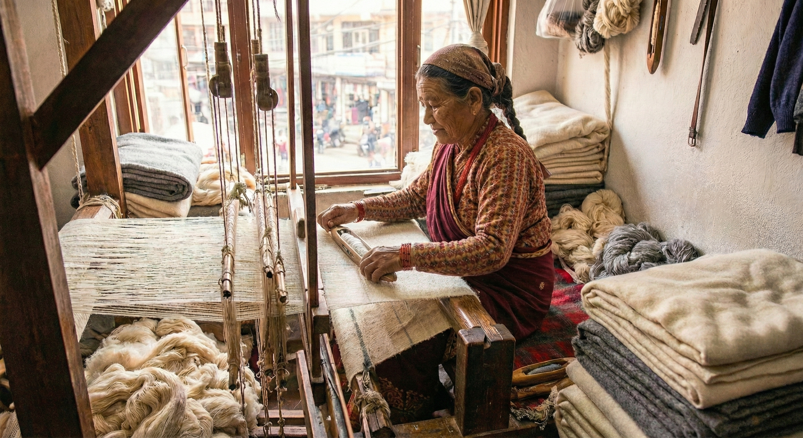 Once harvested, the exquisite cashmere fibers travel to Nepal, where skilled artisans transform them into beautiful throw blankets.In small, family-run workshops, traditional handcraft techniques are combined with careful attention to quality and detail. Each blanket is lovingly woven and finished by craftspeople who bring generations of expertise to every stitch.